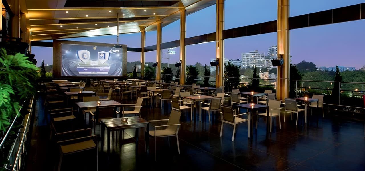 There is a Sky Lounge with Bar and Restaurant on the roof top of the Club House. This Roof Garden is great in demand by our Members as it is over looking BBMP Sports stadium, provided with imported high quality furnitures. The main attraction is that a wide cinema screen which entertain our Members to view live Cricket and Sports. This has been designed with good landscaping, fountains and fish aquarium. It is open only in the evening from 6.00 P.M. to 11 P.M. on all days.